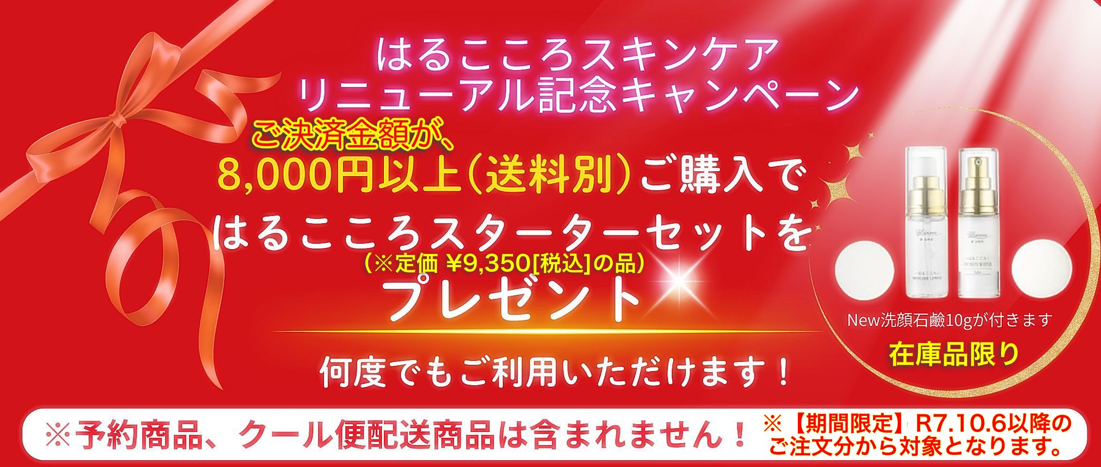【期間限定】はるこころスキンケア リニューアル記念🎁8,000円以上でスターターセットプレゼント!