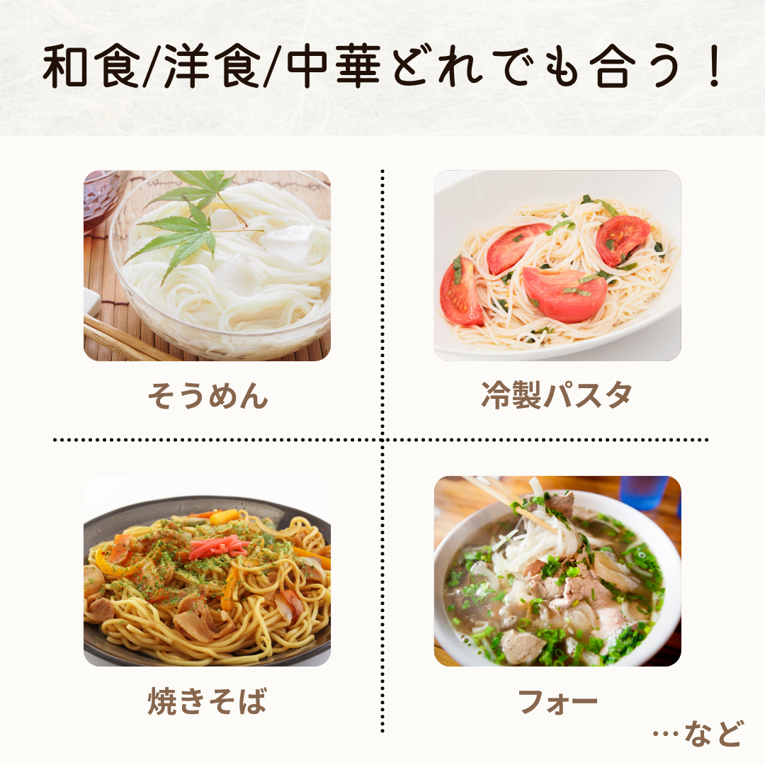 モチモチとした食感が特長のオリジナル米粉麺です。
